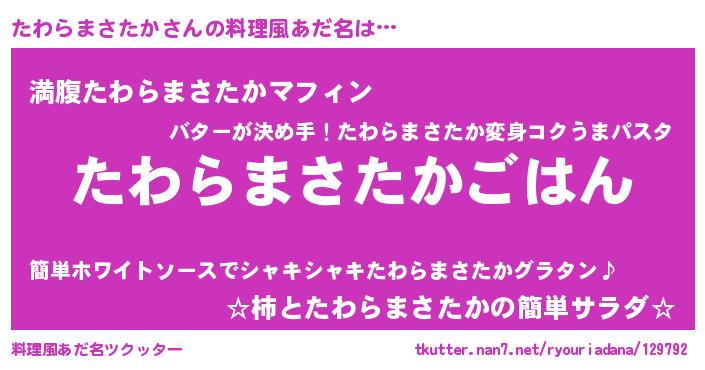 | ヘコむあだ名 | 『たわらまさたか(笑)』『たわぷりん』 |