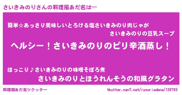 | ヘコむあだ名 | 『さいきみのり(震え声)』『さい太郎』 |