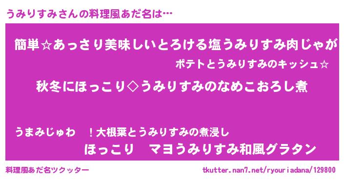 | 意味不明あだ名 | 『永久保存うみりすみ』『自称うみりすみ』 |