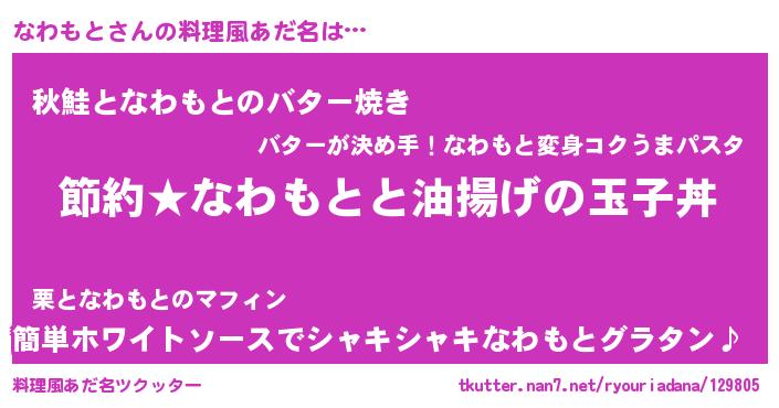 | ピコ太郎風あだ名 | 『ナコ六郎』『ピコナ郎』『ナワ二郎』 |