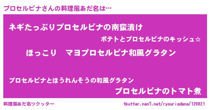 | 男性向けラノベタイトル風あだ名 | 『この素晴らしい世界にプロセルピナを!』 |