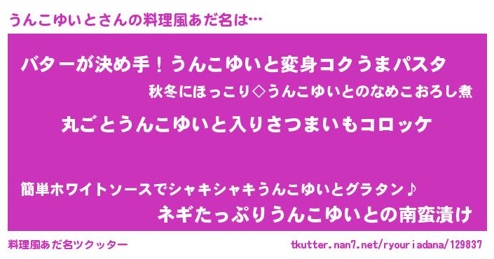 | 欧米人風あだ名 | 『ダレノガレうんこゆいと』 |