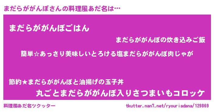 | ヘコむあだ名 | 『まだらががんぼ(笑)』『まだもー』 |
