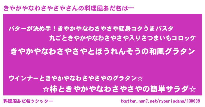 | 意味不明あだ名 | 『ニラ科きやかやなわさやさや属』 |
