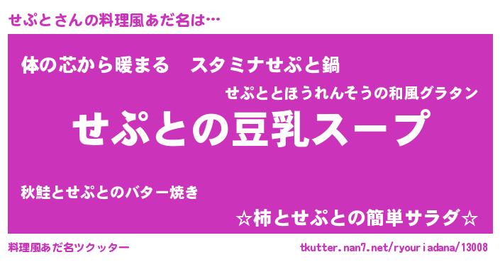 | ヘコむあだ名 | 『せぷを』『つくし』『せぷと(笑)』 |