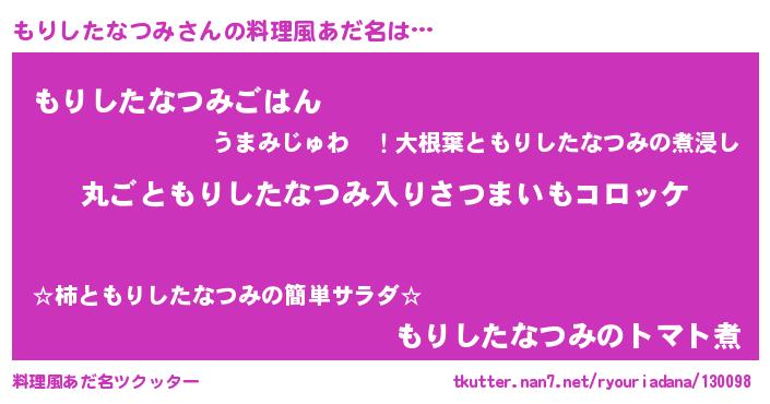 | 意味不明あだ名 | 『住所不定無職もりしたなつみ(84歳)』 |