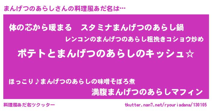 | 意味不明あだ名 | 『とにかく怪しいまんげつのあらし』 |