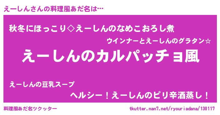 | 女子向けラノベタイトル風あだ名 | 『えーしんが死なない童話 林檎のえーしんの診療簿』 |