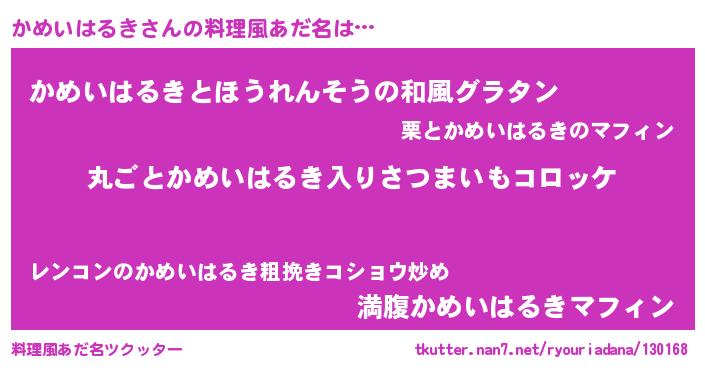 | ヘコむあだ名 | 『かめいはるき(苦笑)』『かめっぺ』 |