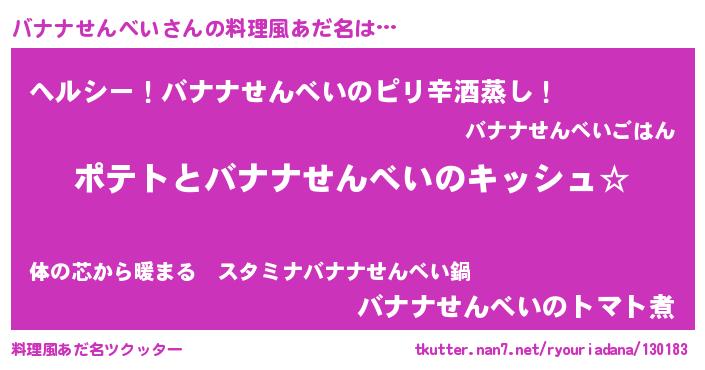 | ヒーロー風カッコイイあだ名 | 『魔戒騎士バナ』『ネオバナナセンベイ』 |