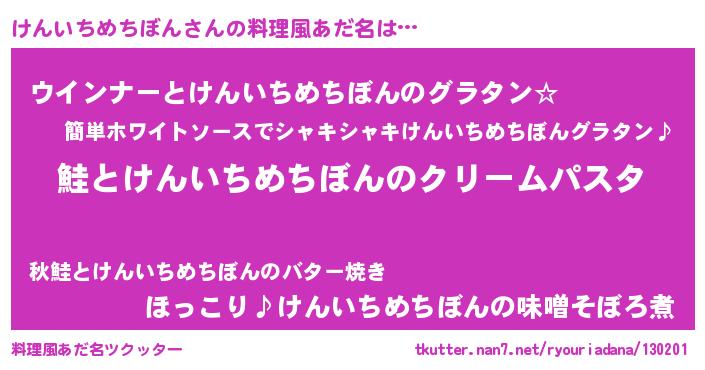 | 男性向けラノベタイトル風あだ名 | 『ノーゲーム・ノーケンイチメチボン』 |