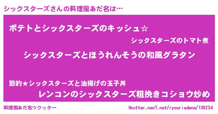 | 女子向けラノベタイトル風あだ名 | 『シックスターズの玉の輿計画!』 |