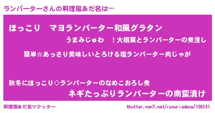 | ヘコむあだ名 | 『ランパーター(遠い目)』『ランもー』 |