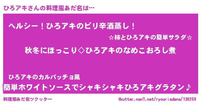 | 意味不明あだ名 | 『自称ひろアキ』『永久保存ひろアキ』 |