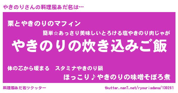 | 意味不明あだ名 | 『ペロリンやきのり』『永久保存やきのり』 |