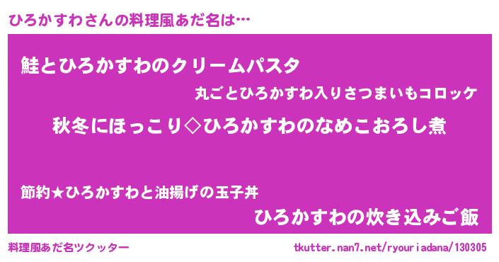 | 男性向けラノベタイトル風あだ名 | 『ひろかすわに滅ぼされるだけの簡単なお仕事です』 |