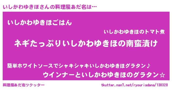 | ヘコむあだ名 | 『いしふぇ~』『つくし』『いし太郎』 |