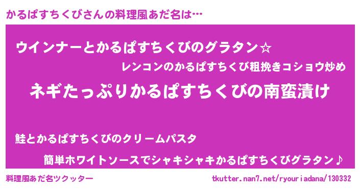 | 胡散臭い通販商品みたいなあだ名 | 『億万長者になれる水晶球…その名も「かるぱすちくび」』 |