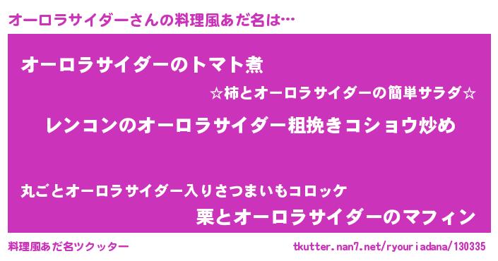 | ヘコむあだ名 | 『オーロラサイダー(笑)』『オーにゅー』 |