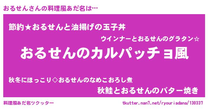 | ヘコむあだ名 | 『おるにゅー』『おるせん(苦笑)』 |