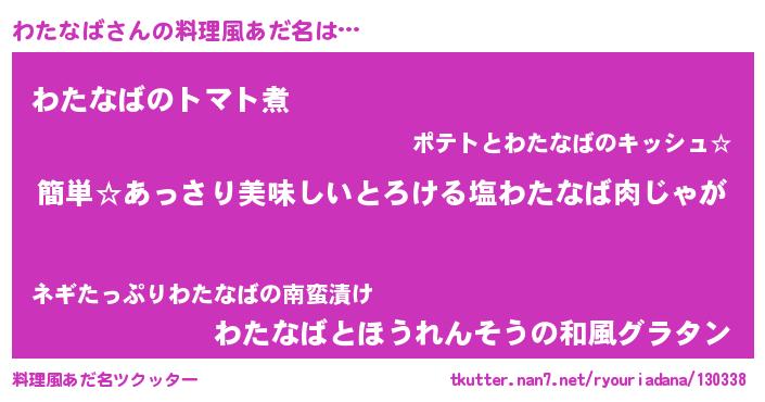 | 胡散臭い通販商品みたいなあだ名 | 『前代未聞の健康食品…その名も「わたなば」』 |