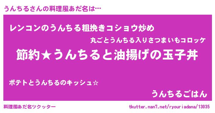 | 男性向けラノベタイトル風あだ名 | 『うんちるの憂鬱』『ウンチルスレイヤー』 |