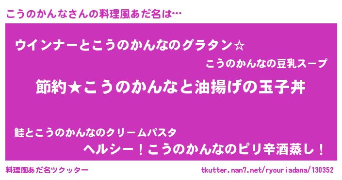 | 男性向けラノベタイトル風あだ名 | 『こうのかんなの憂鬱』 |