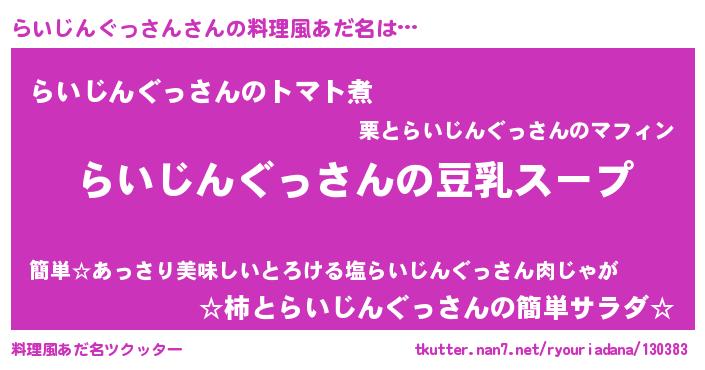 | 胡散臭い通販商品みたいなあだ名 | 『信頼と実績のサプリメント…その名も「らいじんぐっさん」』 |