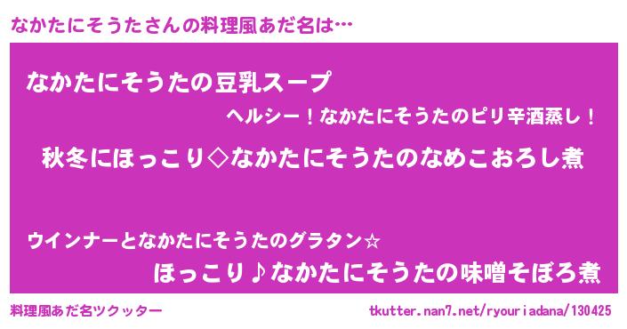 | ポケモン風あだ名 | 『ナカゴンZ』『ヒナカタニソウタ』 |