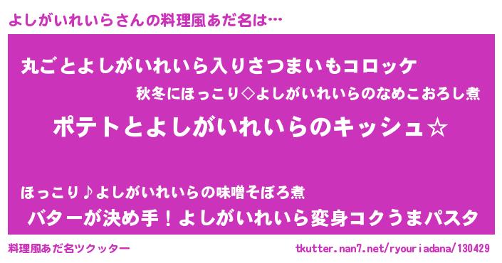 | 男性向けラノベタイトル風あだ名 | 『よしがいれいらの嫁は女の子じゃないと思った?』 |