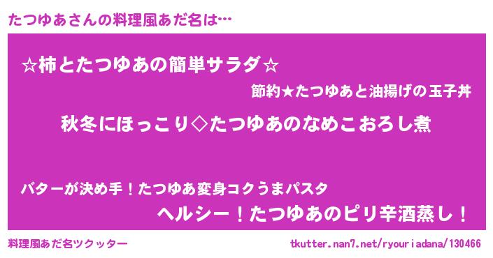 | 男性向けラノベタイトル風あだ名 | 『たつゆあに滅ぼされるだけの簡単なお仕事です』 |