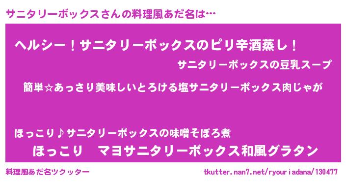 | 意味不明あだ名 | 『永久保存サニタリーボックス』 |