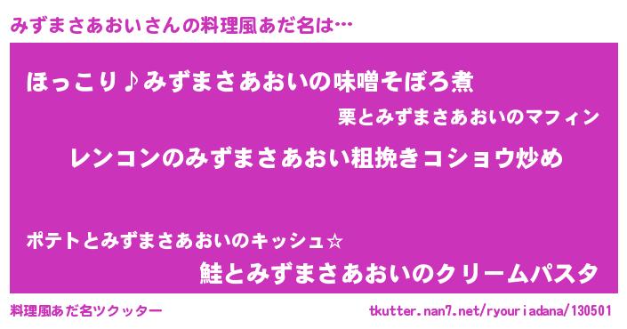 | 意味不明あだ名 | 『自称みずまさあおい』 |