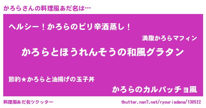 | ヘコむあだ名 | 『かろら(笑)』『かろにゅー』 |