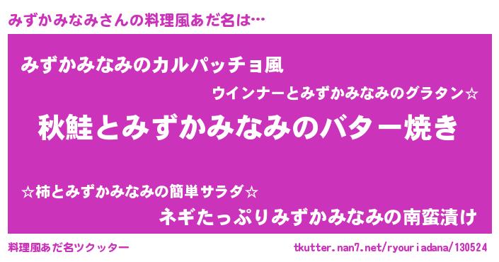 | ヘコむあだ名 | 『みずかみなみ(笑)』『みずにゅー』 |