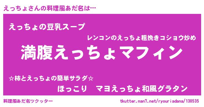 | 男性向けラノベタイトル風あだ名 | 『えっちょという概念が存在しない退屈な世界 』 |