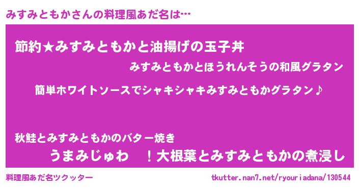 | 男性向けラノベタイトル風あだ名 | 『みすみともかの嫁は女の子じゃないと思った?』 |