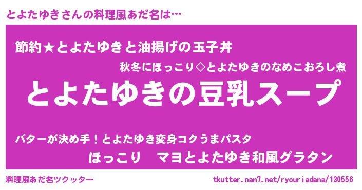 | ピコ太郎風あだ名 | 『トヨ史郎』『トコ五郎』『トト太郎』 |