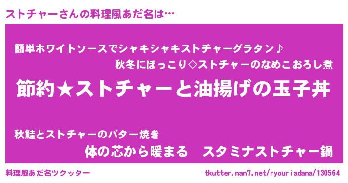 | 男性向けラノベタイトル風あだ名 | 『ストチャーの憂鬱』 |