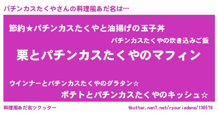 | 恥ずかしいあだ名 | 『プリティーパチンカスたくや』 |