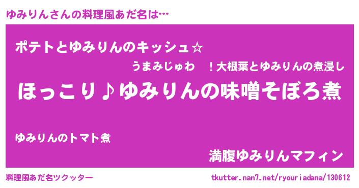 | 女子向けラノベタイトル風あだ名 | 『(仮)ゆみりんのやんごとなき事情』 |