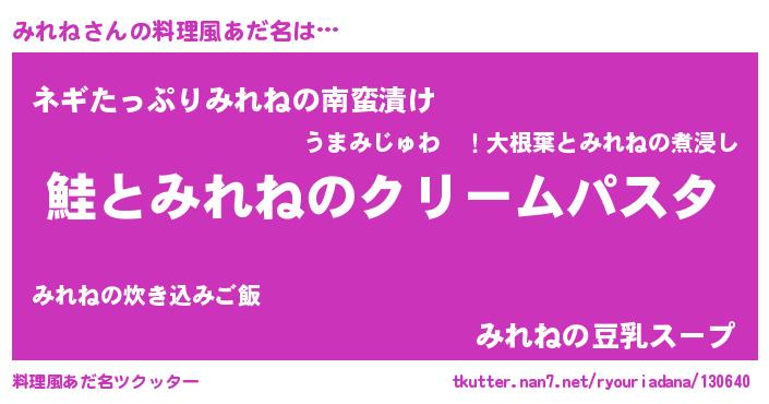 | ヒーロー風カッコイイあだ名 | 『慈愛の使者みれね』『スーパーミレネ』 |