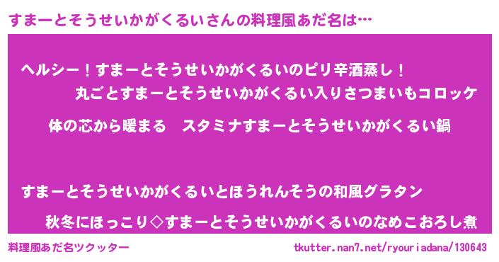 | 女子向けラノベタイトル風あだ名 | 『すまーとそうせいかがくるいの雑貨屋さん』 |