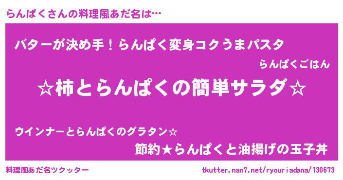 | ヒーロー風カッコイイあだ名 | 『正義の使者らんぱく』『ネオランパク』 |