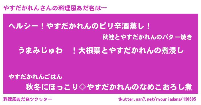 | ヘコむあだ名 | 『レバニラ』『やすだかれん(苦笑)』 |