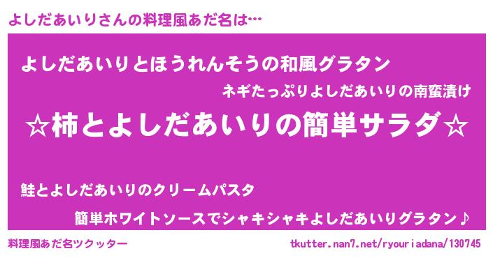 | 肩書あだ名 | 『よしだあいり船長』『よしだあいり少将』 |