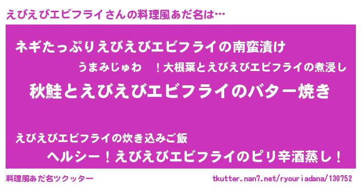 | 意味不明あだ名 | 『永久保存えびえびエビフライ』 |