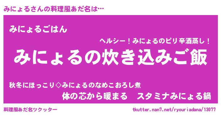 | 意味不明あだ名 | 『なめこ科みにょる属』『自称みにょる』 |