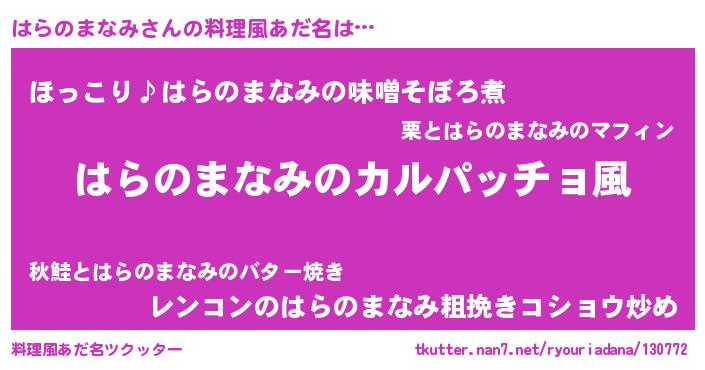 | ヘコむあだ名 | 『はらもー』『はらのまなみ(笑)』 |