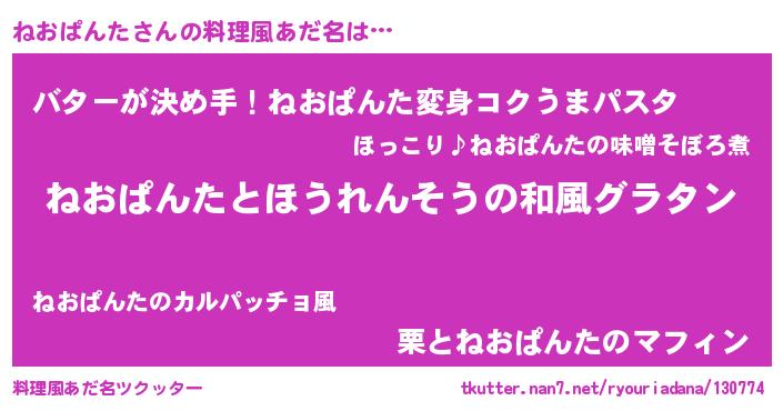 | ヒーロー風カッコイイあだ名 | 『慈愛の使者ねおぱんた』『仮面ネオダー』 |